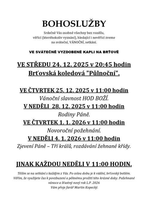 VÁNOČNÍ BOHOSLUŽBY BRŤOV-JENEČ
