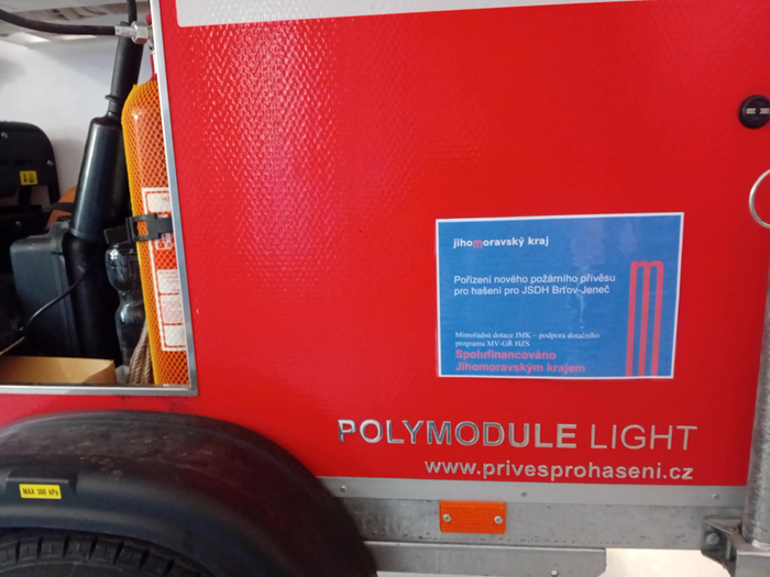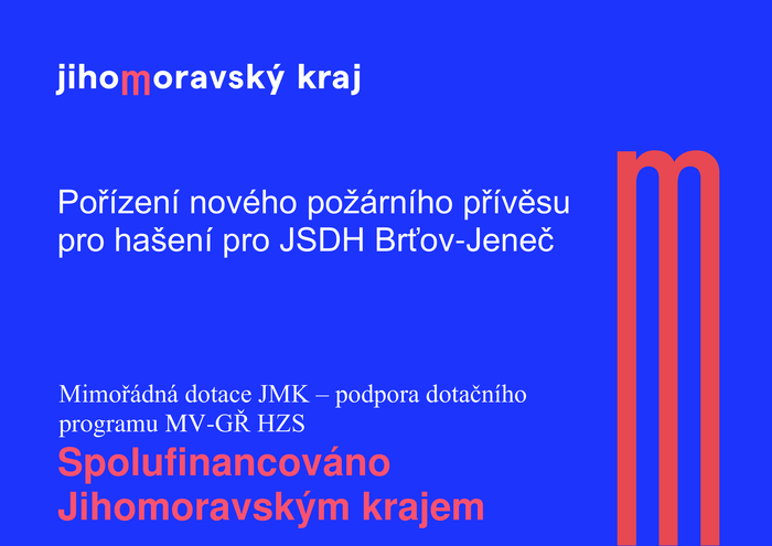 Nákup nového přívěsu pro hašení byl realizován za podpory Jihomoravského kraje a Ministerstva vnitra – Generálního ředitelství Hasičského záchranného sboru České republiky.