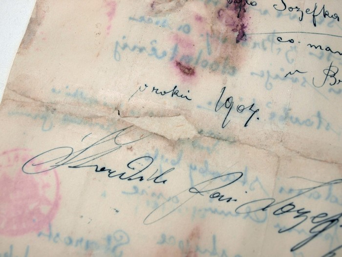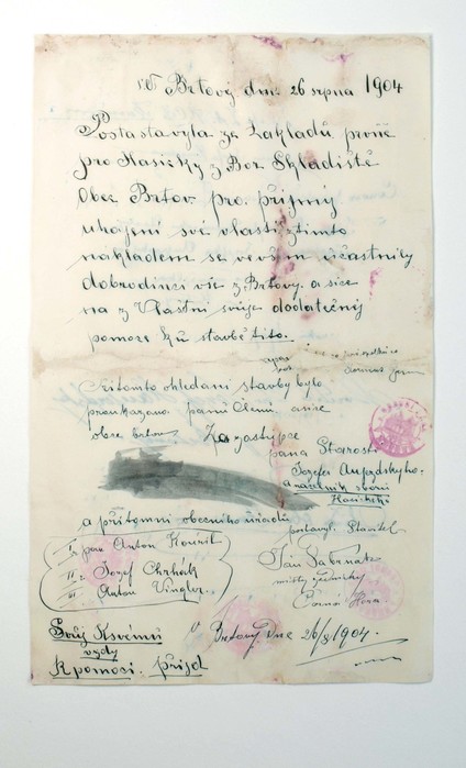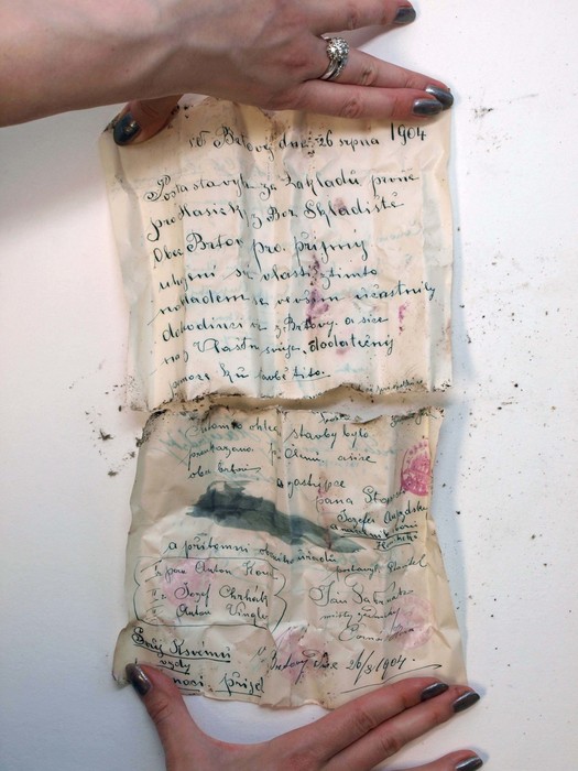 Úvod > Život v obci > Fotogalerie > Nález listiny z r. 1904